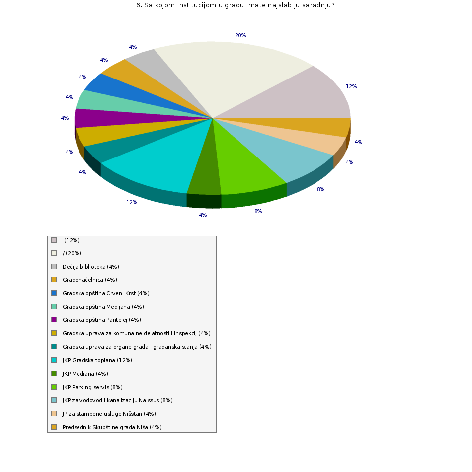 Нa дoлe нaвeдeнe линкoвe (питaњa oд 1 дo 6), мoжeтe пoглeдaти грaфикoнe кojи прикaзуjу кaкo су приврeдници грaдa Нишa oдгoвaрaли нa питaњa.